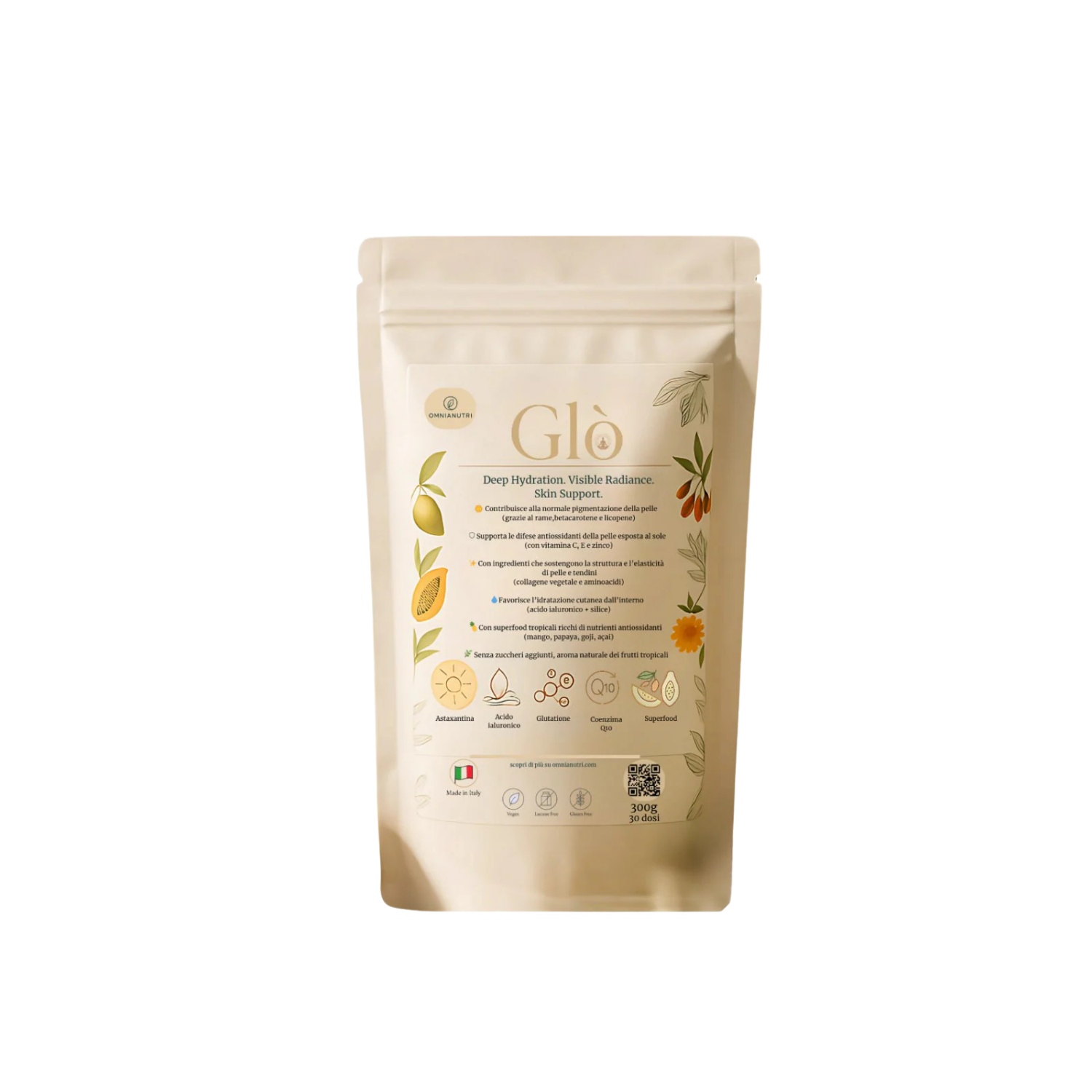 Glò è un integratore progettato per supportare nel tempo i processi biologici coinvolti nella risposta cutanea allo stress ambientale.